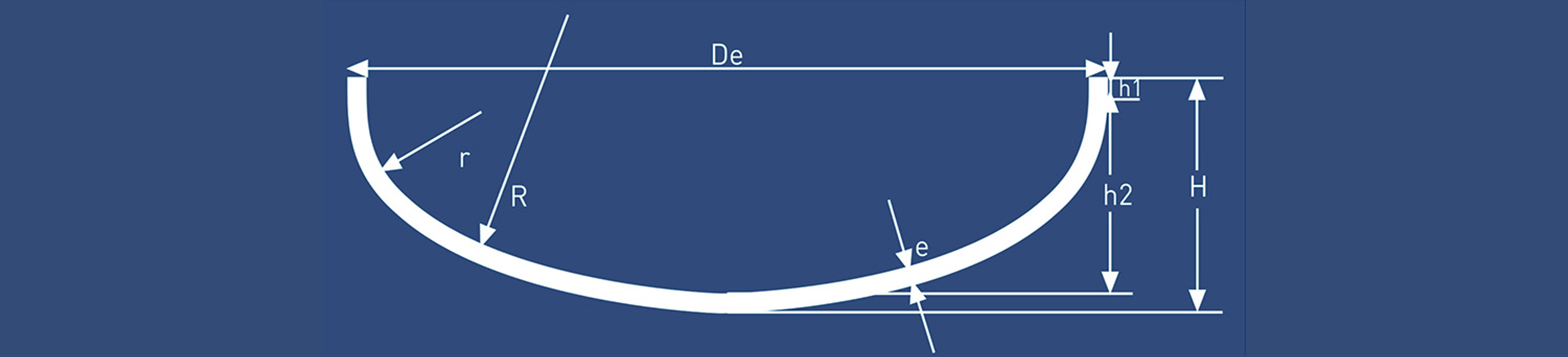 De:外徑e:投料厚度H:總高度h1:直邊高度h2:外曲面高度