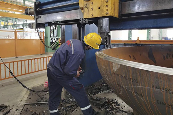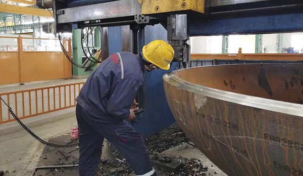 如果說每塊鋼板都是通過高溫捶打的產物,那么每件封頭折邊成型的瞬間,便是鋼板價值升華的過程。在這“升華”的背后,包含著折邊班組全員的匠心。